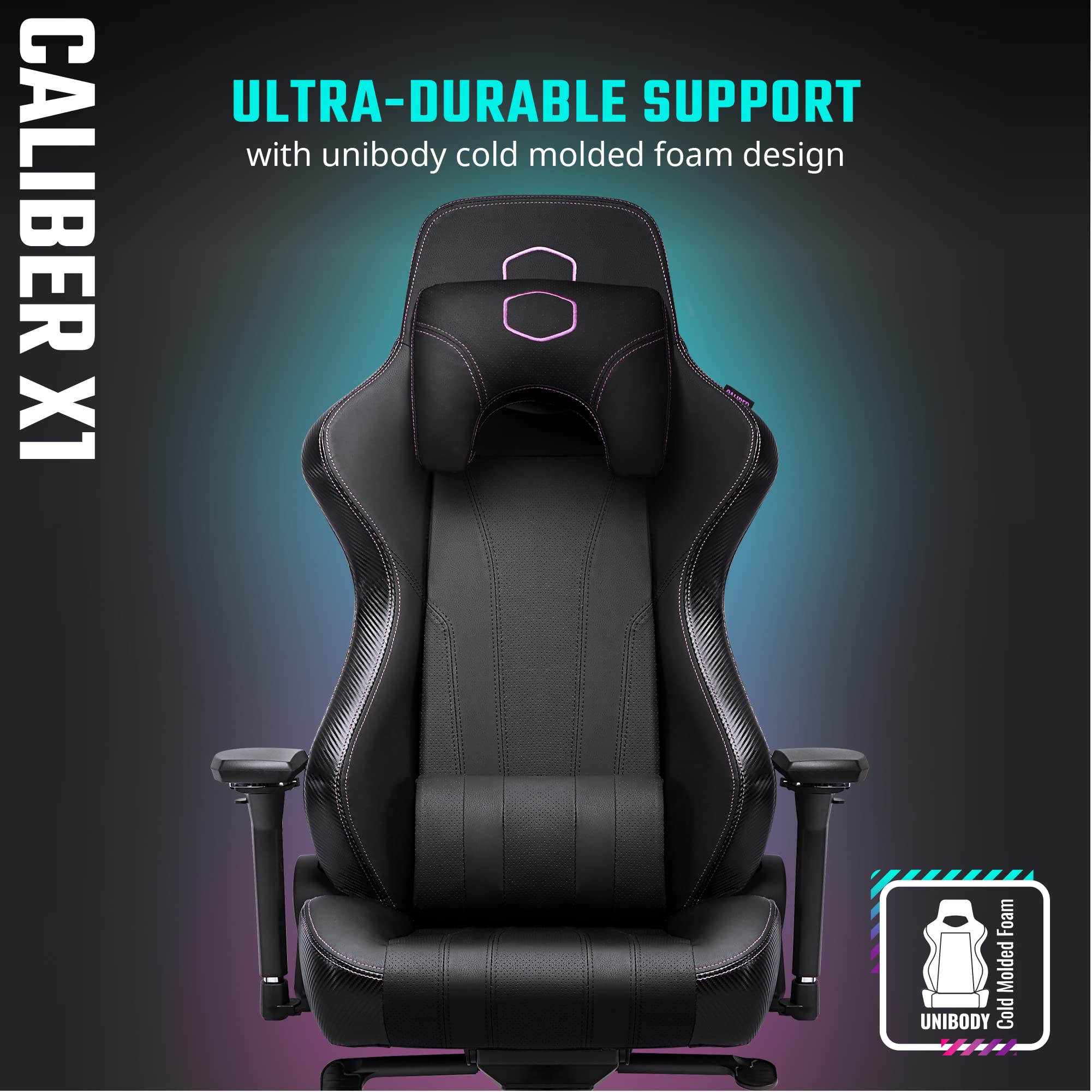 Cooler Master Caliber X1 Gaming Racing Chair Ergonomic Office Chair Seat Height And 4d Armrest Adjustment Recliner Molded Foam In Headrest And Lumbar Support Aluminum Base Black